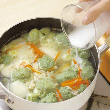 とろっと柔らかいかぶの優しい甘さとほたて貝柱のうまみがきいたスープレシピ。緑効青汁入りの鶏団子が食べ応えもあり体が温まる一品です!ゆずの爽やかな香りも広がります♪